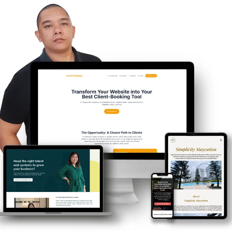 This is a complete, done-for-you system designed to streamline your entire client acquisition process. Explore the key components below to see how each piece works to support your business goals and provide a seamless experience for your visitors.